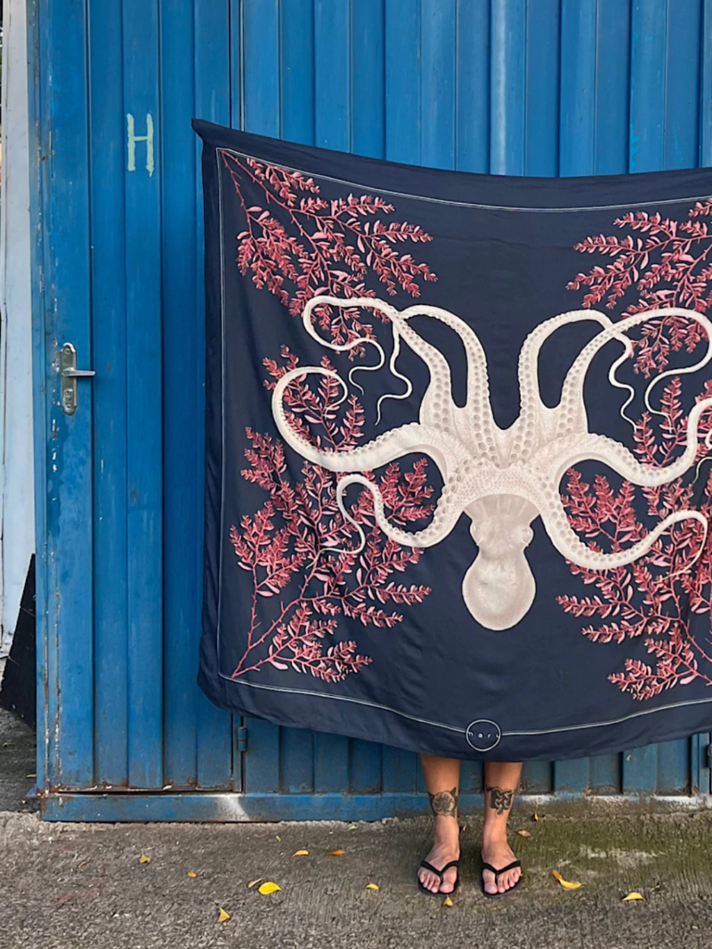 As estampas das bandeiras decorativas são elaboradas com referências na natureza e astrologia, em especial a flora e a fauna brasileira. Desenvolvidas através de colagem, é possível preservar detalhes ricos dos elementos no tecido, que é estampado por meio de estamparia digital.